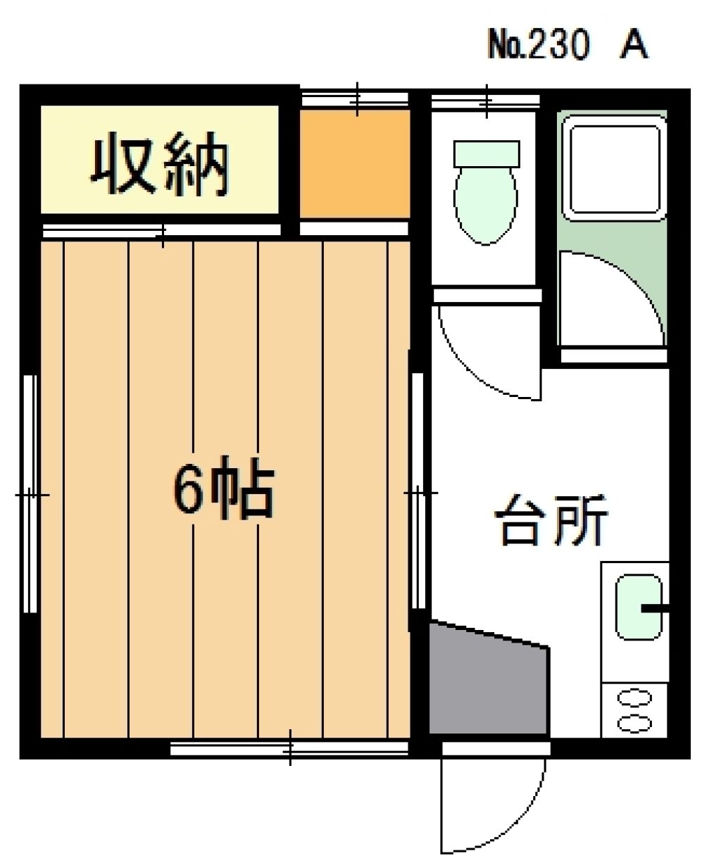 | 間取り | 6帖(洋室)×キッチン×バス×トイレ |